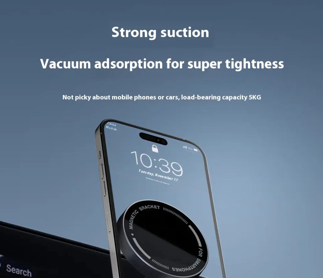 Answer 1: The phone holder features a strong vacuum suction base that ensures a stable and secure grip for your device, preventing any accidental slips or drops during use.